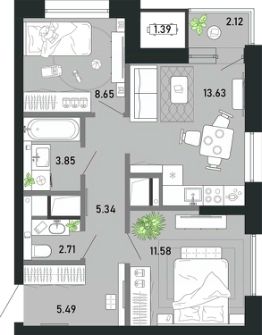 Продаётся 2-комнатная квартира в строящемся доме (Гелиос), срок сдачи: II-кв. 2029, общей площадью 54.76 кв.м., на 4 этаже. Новый жилой комплекс "ПРЕМЬЕР ПАРК" от застройщика "ПРЕМЬЕР ПАРК ТУЛА" расположен по адресу: г. Тула, район Советский, улица Ф. Энгельса, дом 70