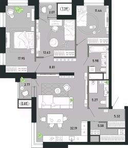 Продаётся 3-комнатная квартира в строящемся доме (Гелиос), срок сдачи: II-кв. 2029, общей площадью 110.77 кв.м., на 4 этаже. Новый жилой комплекс "ПРЕМЬЕР ПАРК" от застройщика "ПРЕМЬЕР ПАРК ТУЛА" расположен по адресу: г. Тула, район Советский, улица Ф. Энгельса, дом 70