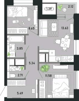 Продаётся 2-комнатная квартира в строящемся доме (Гелиос), срок сдачи: II-кв. 2029, общей площадью 54.76 кв.м., на 6 этаже. Новый жилой комплекс "ПРЕМЬЕР ПАРК" от застройщика "ПРЕМЬЕР ПАРК ТУЛА" расположен по адресу: г. Тула, район Советский, улица Ф. Энгельса, дом 70