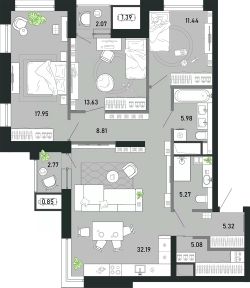 Продаётся 3-комнатная квартира в строящемся доме (Гелиос), срок сдачи: II-кв. 2029, общей площадью 110.77 кв.м., на 6 этаже. Новый жилой комплекс "ПРЕМЬЕР ПАРК" от застройщика "ПРЕМЬЕР ПАРК ТУЛА" расположен по адресу: г. Тула, район Советский, улица Ф. Энгельса, дом 70