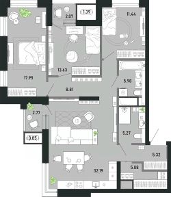 Продаётся 3-комнатная квартира в строящемся доме (Гелиос), срок сдачи: II-кв. 2029, общей площадью 110.77 кв.м., на 7 этаже. Новый жилой комплекс "ПРЕМЬЕР ПАРК" от застройщика "ПРЕМЬЕР ПАРК ТУЛА" расположен по адресу: г. Тула, район Советский, улица Ф. Энгельса, дом 70