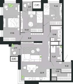 Продаётся 3-комнатная квартира в строящемся доме (Гелиос), срок сдачи: II-кв. 2029, общей площадью 110.77 кв.м., на 11 этаже. Новый жилой комплекс "ПРЕМЬЕР ПАРК" от застройщика "ПРЕМЬЕР ПАРК ТУЛА" расположен по адресу: г. Тула, район Советский, улица Ф. Энгельса, дом 70