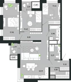 Продаётся 3-комнатная квартира в строящемся доме (Гелиос), срок сдачи: II-кв. 2029, общей площадью 110.77 кв.м., на 13 этаже. Новый жилой комплекс "ПРЕМЬЕР ПАРК" от застройщика "ПРЕМЬЕР ПАРК ТУЛА" расположен по адресу: г. Тула, район Советский, улица Ф. Энгельса, дом 70