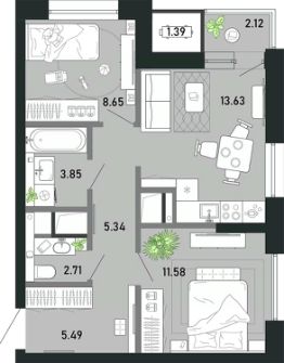 Продаётся 2-комнатная квартира в строящемся доме (Гелиос), срок сдачи: II-кв. 2029, общей площадью 54.76 кв.м., на 15 этаже. Новый жилой комплекс "ПРЕМЬЕР ПАРК" от застройщика "ПРЕМЬЕР ПАРК ТУЛА" расположен по адресу: г. Тула, район Советский, улица Ф. Энгельса, дом 70