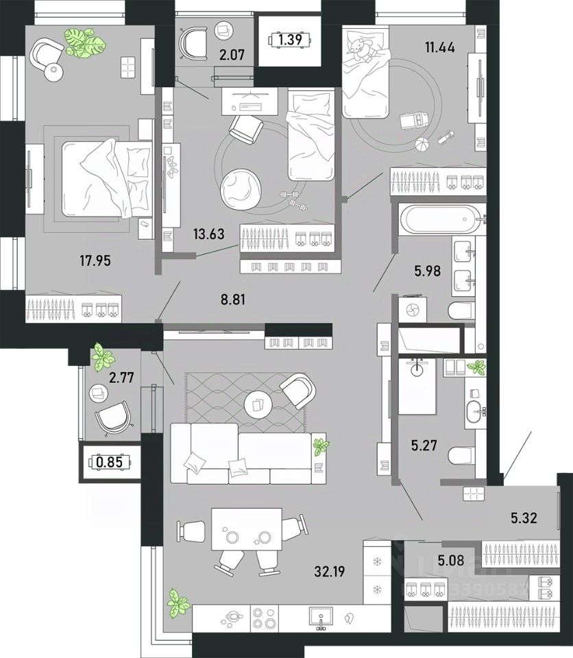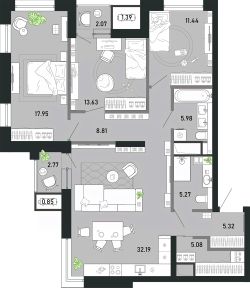Продаётся 3-комнатная квартира в строящемся доме (Гелиос), срок сдачи: II-кв. 2029, общей площадью 110.77 кв.м., на 16 этаже. Новый жилой комплекс "ПРЕМЬЕР ПАРК" от застройщика "ПРЕМЬЕР ПАРК ТУЛА" расположен по адресу: г. Тула, район Советский, улица Ф. Энгельса, дом 70
