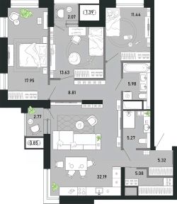Продаётся 3-комнатная квартира в строящемся доме (Гелиос), срок сдачи: II-кв. 2029, общей площадью 110.77 кв.м., на 19 этаже. Новый жилой комплекс "ПРЕМЬЕР ПАРК" от застройщика "ПРЕМЬЕР ПАРК ТУЛА" расположен по адресу: г. Тула, район Советский, улица Ф. Энгельса, дом 70