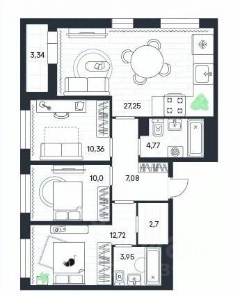 Продаётся 3-комнатная квартира в строящемся доме (4-я очередь), срок сдачи: III-кв. 2026, общей площадью 82.17 кв.м., на 9 этаже. Новый жилой дом от застройщика "ГК Стройальянс" расположен по адресу: Тульская область, Ленинский район, п. Петровский, Одоевское шоссе