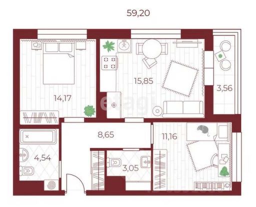 Общая площадь59,2 м²