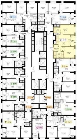Площадь 47.29 на 18 этаже.
