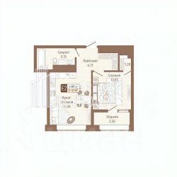 комната 10,53 кв.метров с гардеробной 1,2 кв.метров