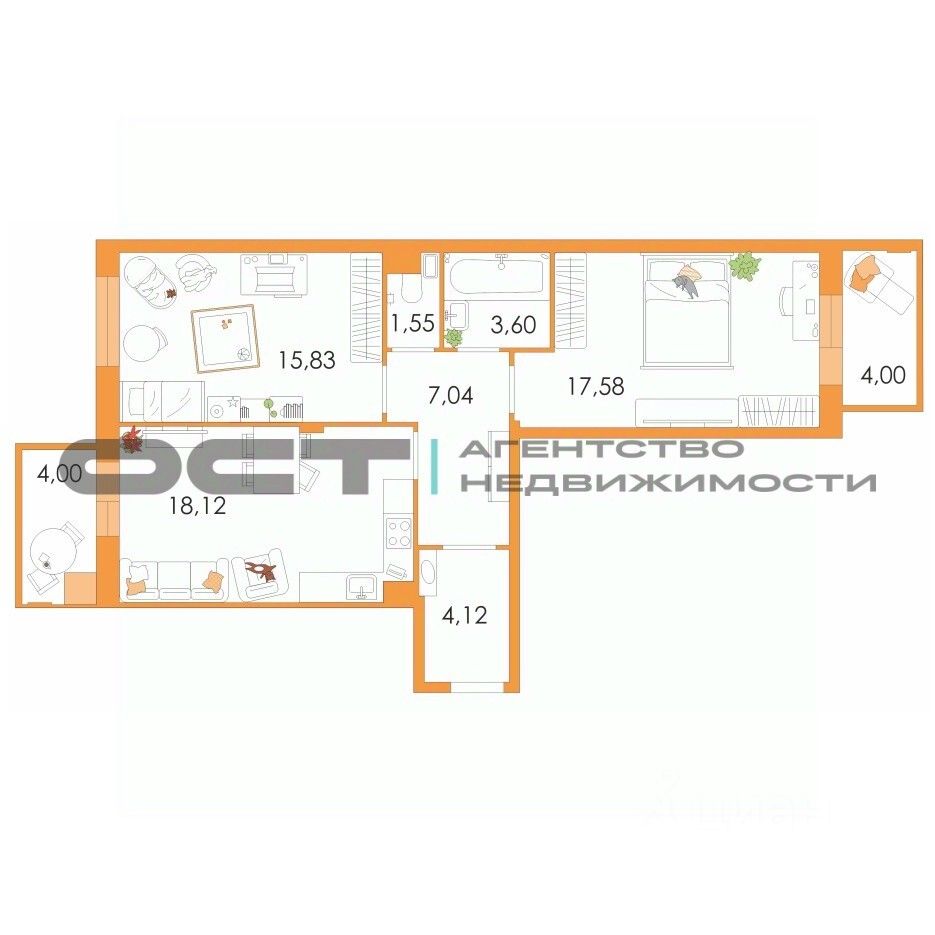 Планировка продумана для комфортной жизни семьи: две отдельные спальни и большая кухня-гостиная, где можно собираться всей семьёй и принимать гостей. Из кухни-гостиной предусмотрен выход на один из балконов — это идеальное место для утреннего кофе или вечернего отдыха.