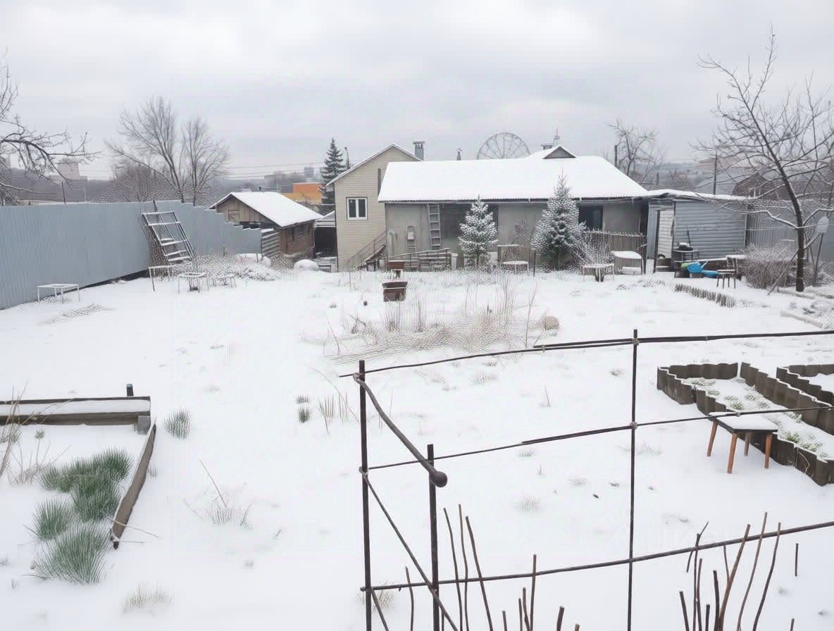 - На участке имеется огромный сарай с подвалом, также растут яблони и груши.