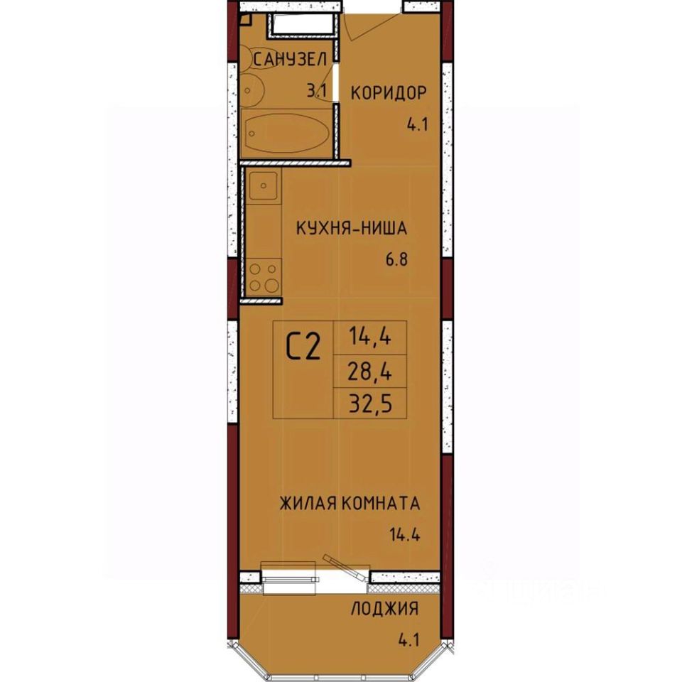 Общая площадь32,5 м²