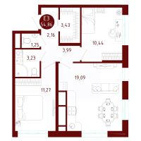 Общая площадь54,86 м²