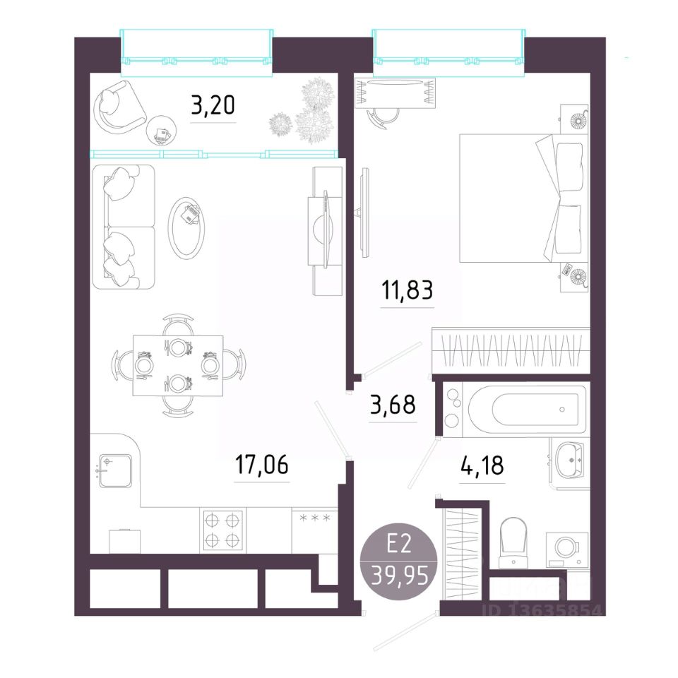 Общая площадь39,95 м²