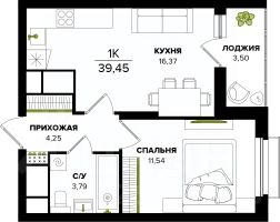 Общая площадь39,45 м²