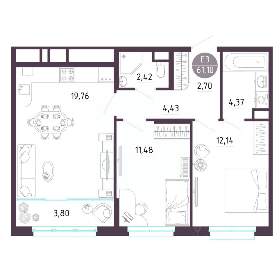 Общая площадь61,1 м²