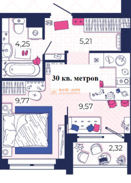 Квартира 30 кв. метров расположена на 11 этаже и имеет балкон.