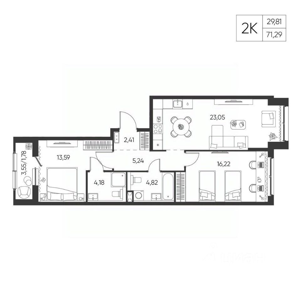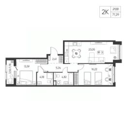 Общая площадь71,29 м²