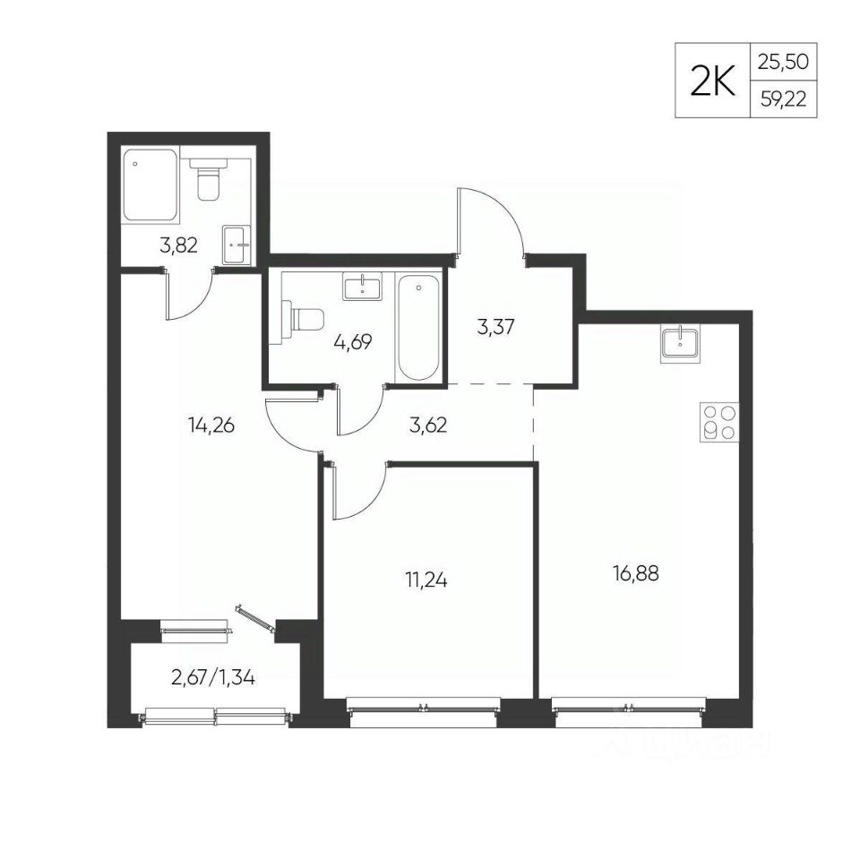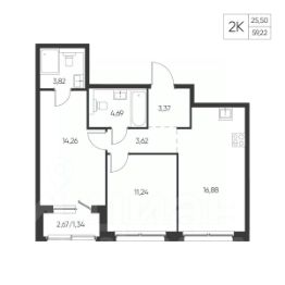 Общая площадь59,22 м²