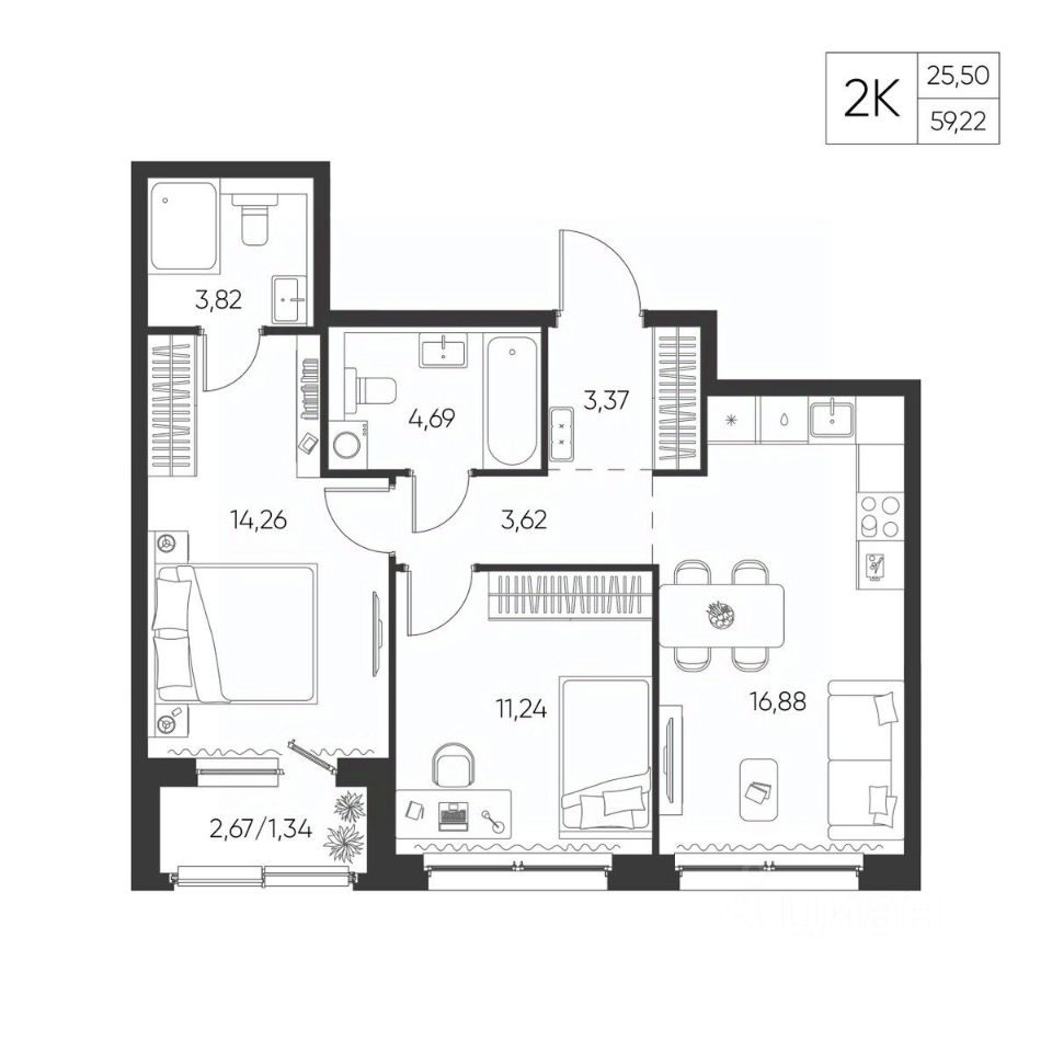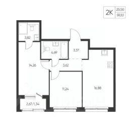 Общая площадь59,22 м²