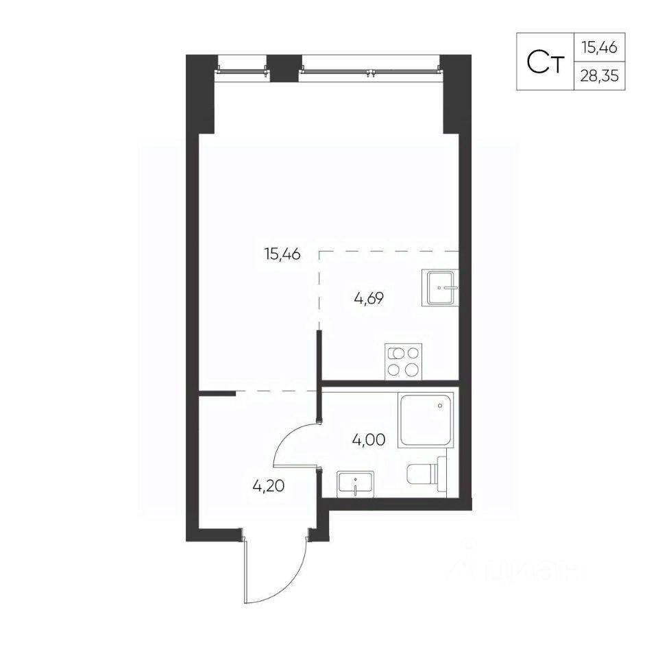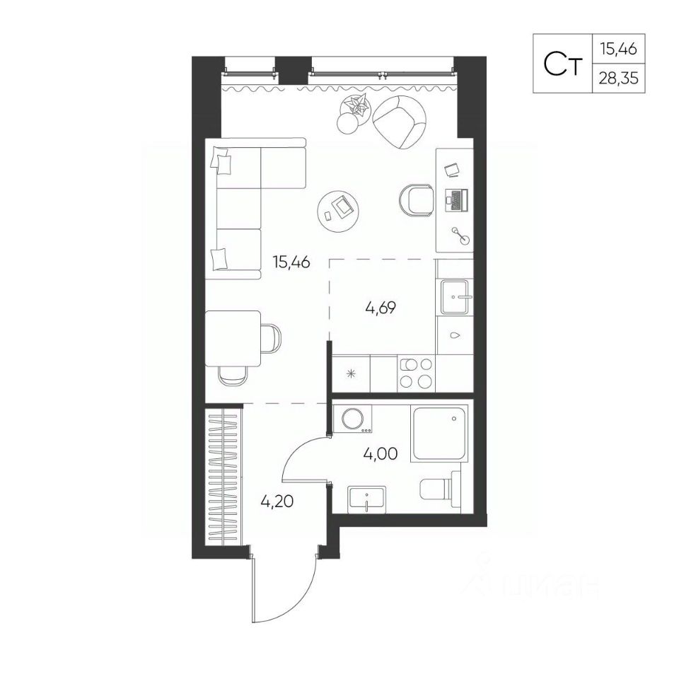 Общая площадь28,35 м²
