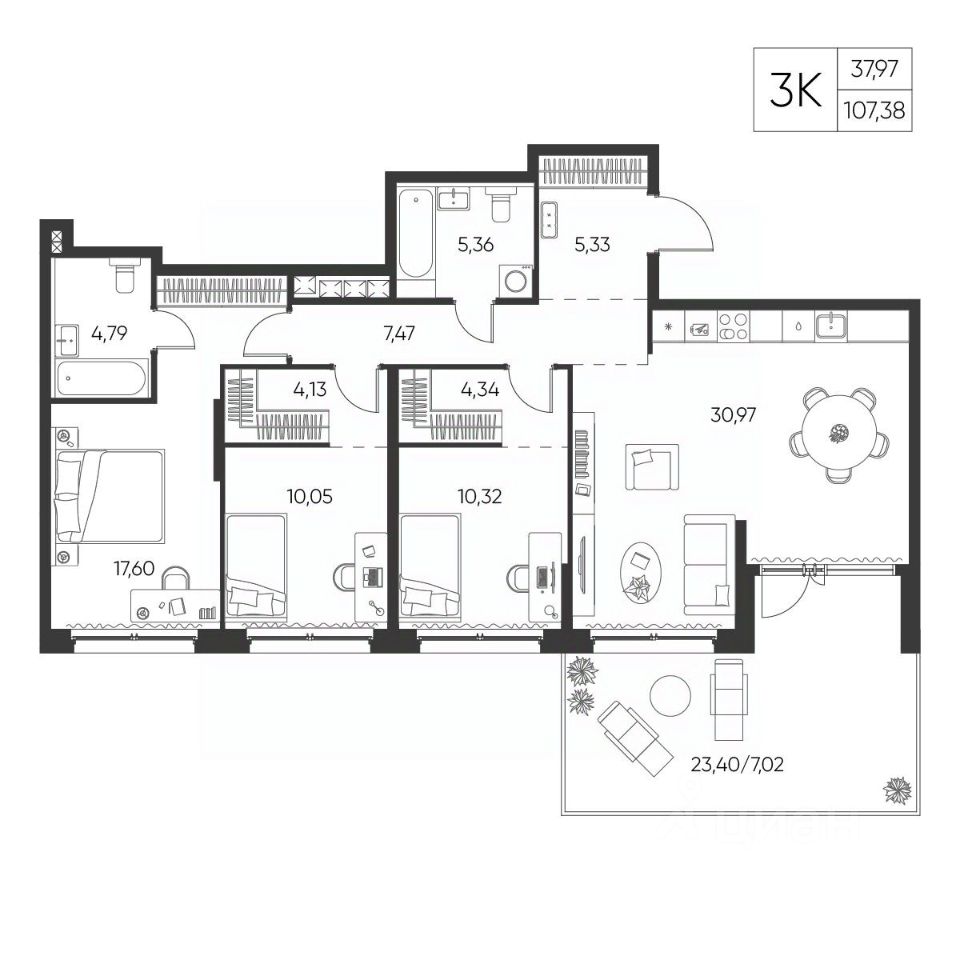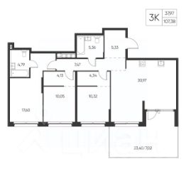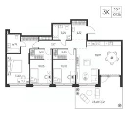 Общая площадь107,38 м²