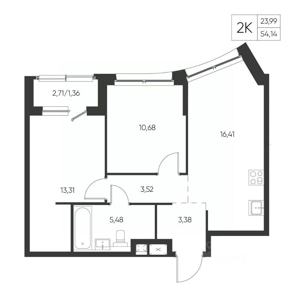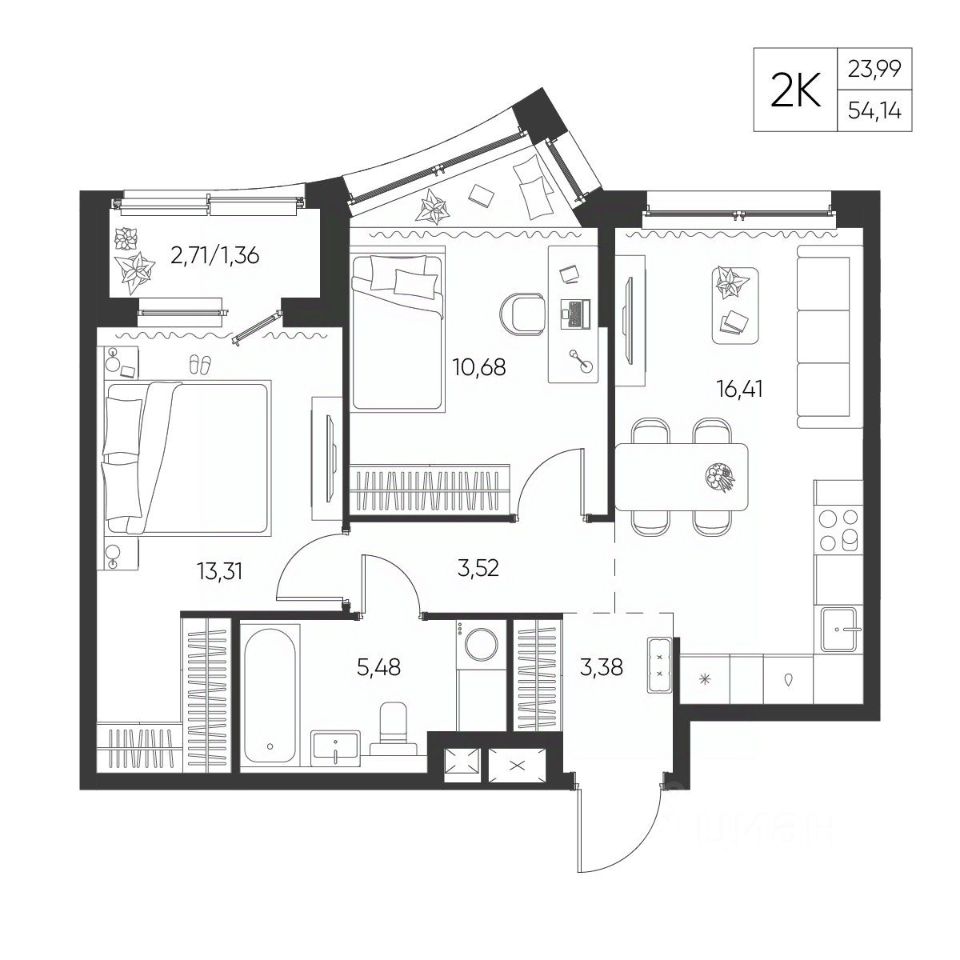 Общая площадь54,14 м²