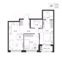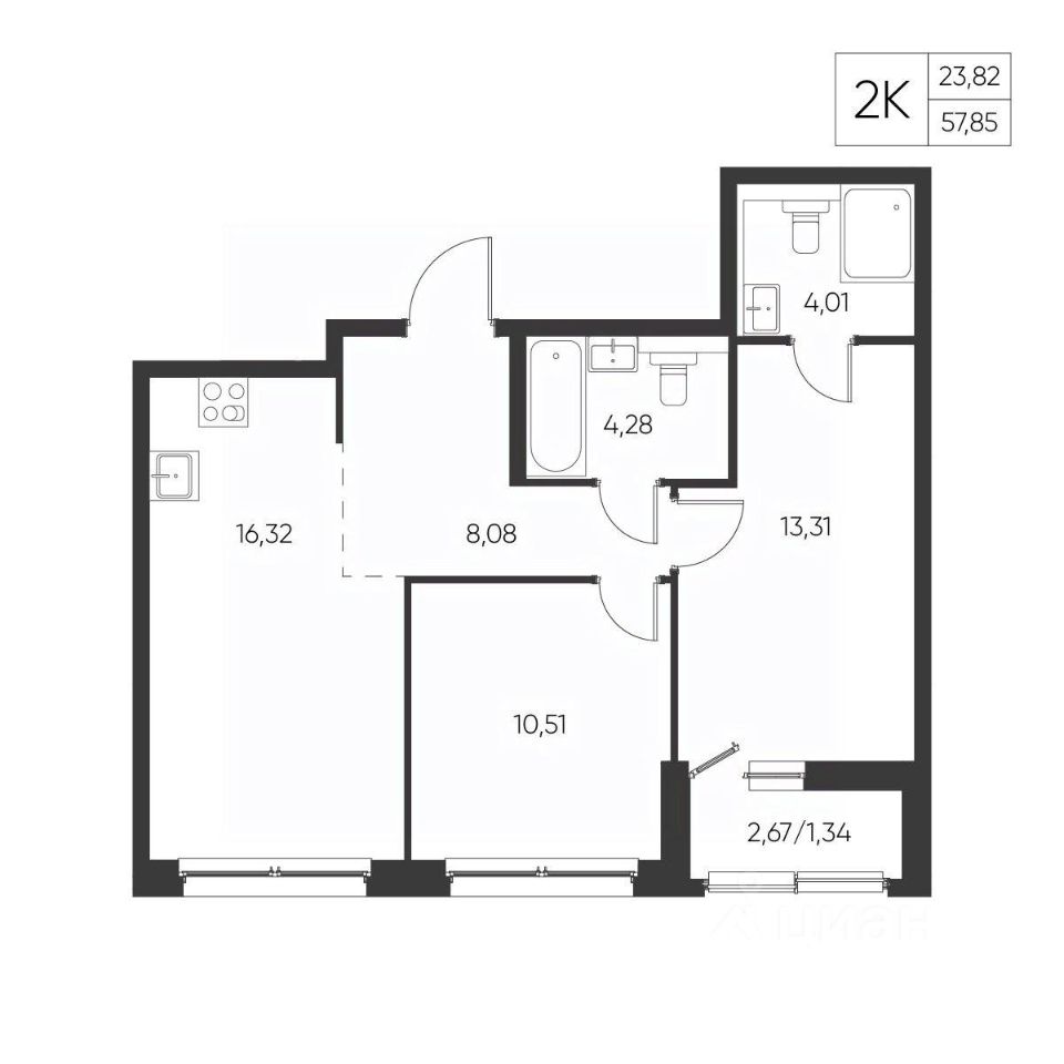 Общая площадь57,85 м²
