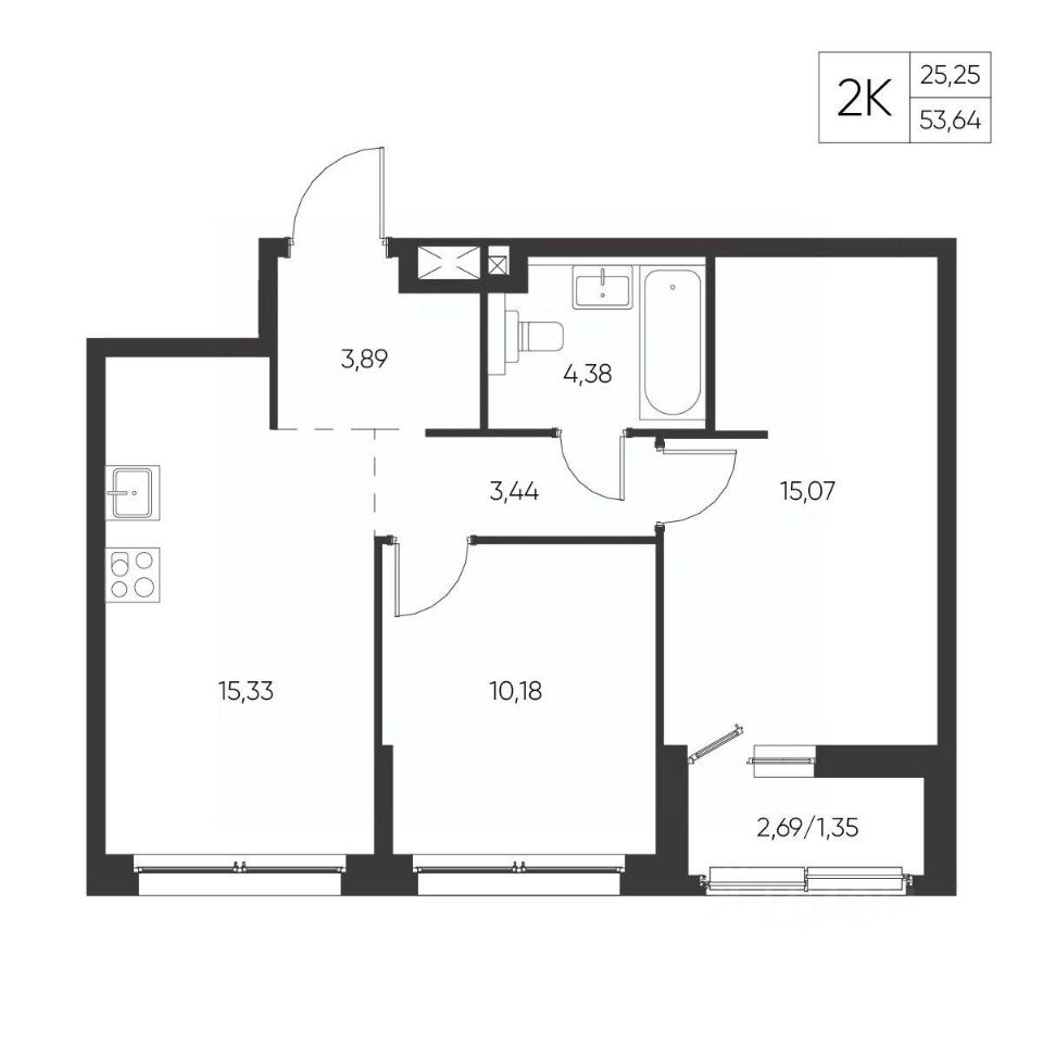 Общая площадь53,64 м²