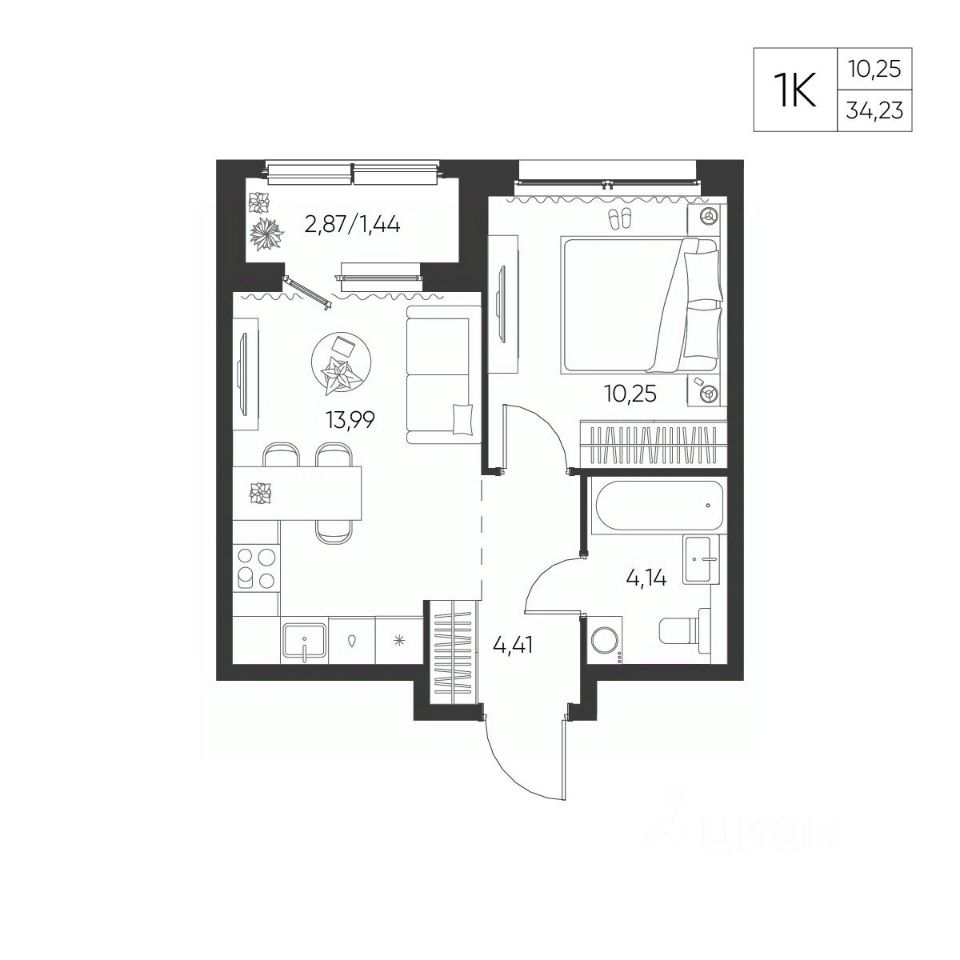 Общая площадь34,23 м²