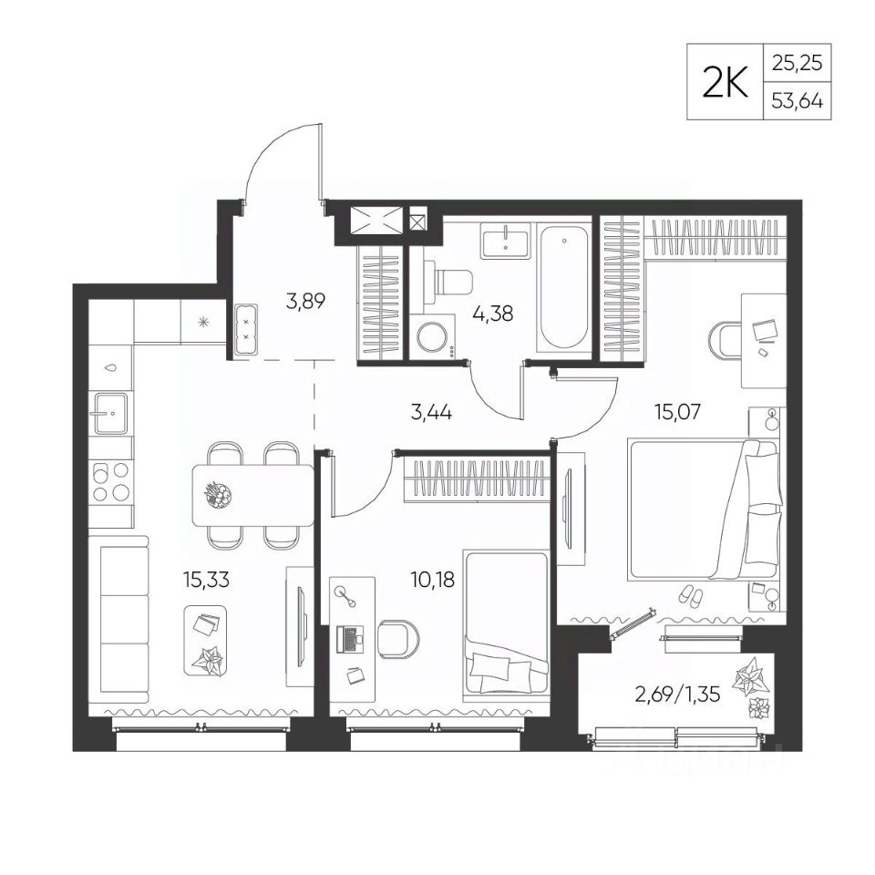 Общая площадь53,64 м²