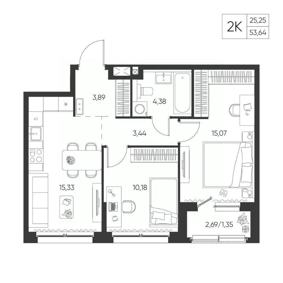 Общая площадь53,64 м²