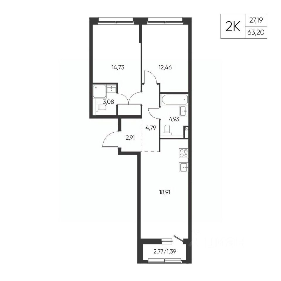Общая площадь63,2 м²