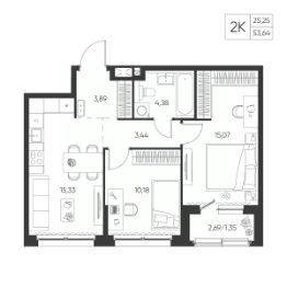 Общая площадь53,64 м²