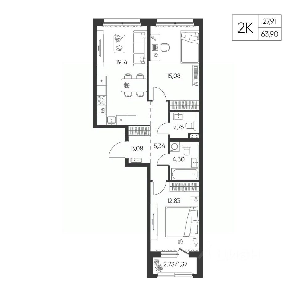 Общая площадь63,9 м²