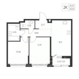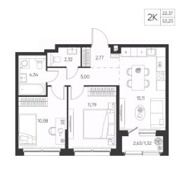 Общая площадь53,23 м²