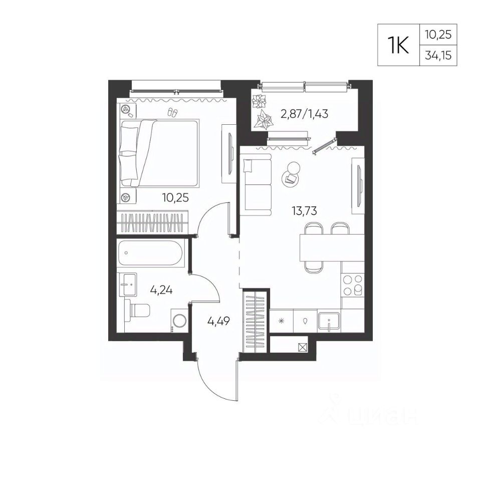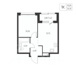 Общая площадь34,15 м²