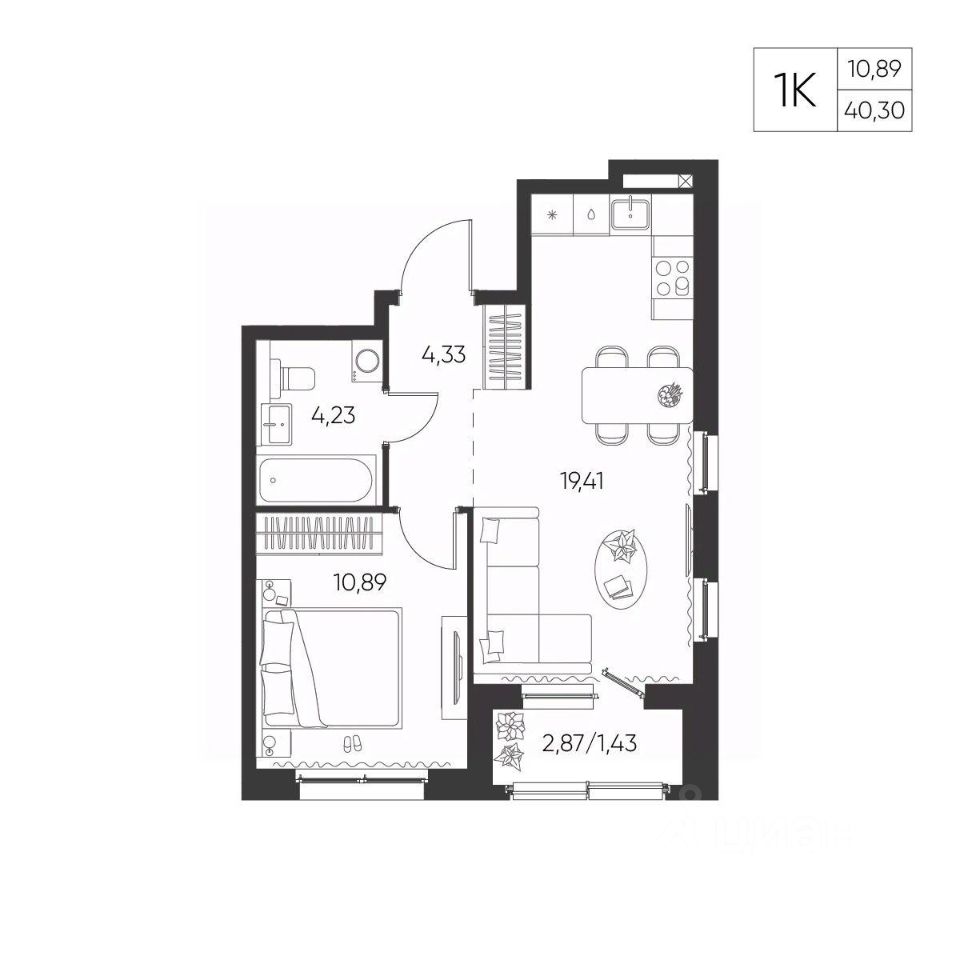 Общая площадь40,3 м²