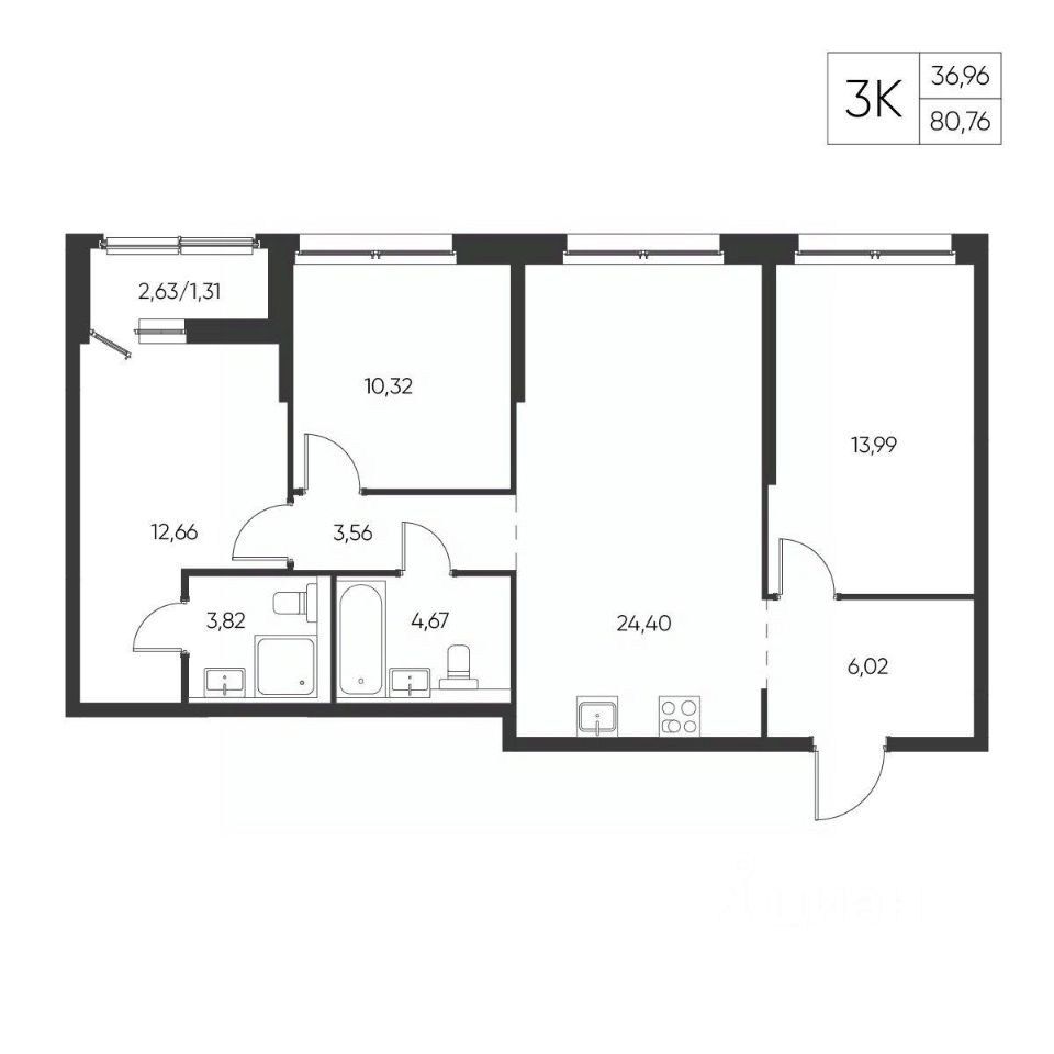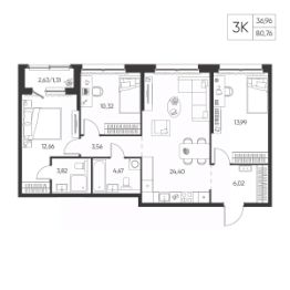 Общая площадь80,76 м²
