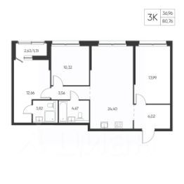 Общая площадь80,76 м²