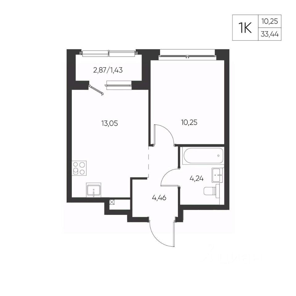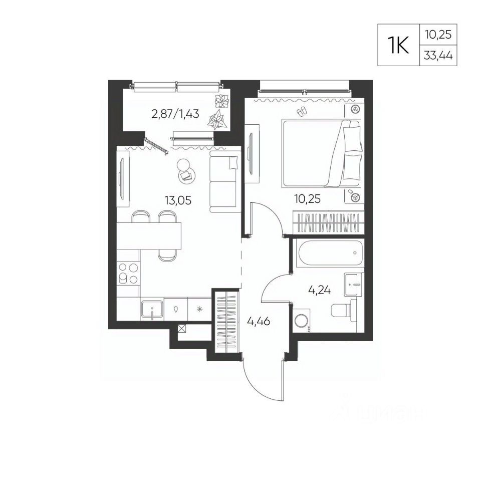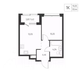 Общая площадь33,44 м²