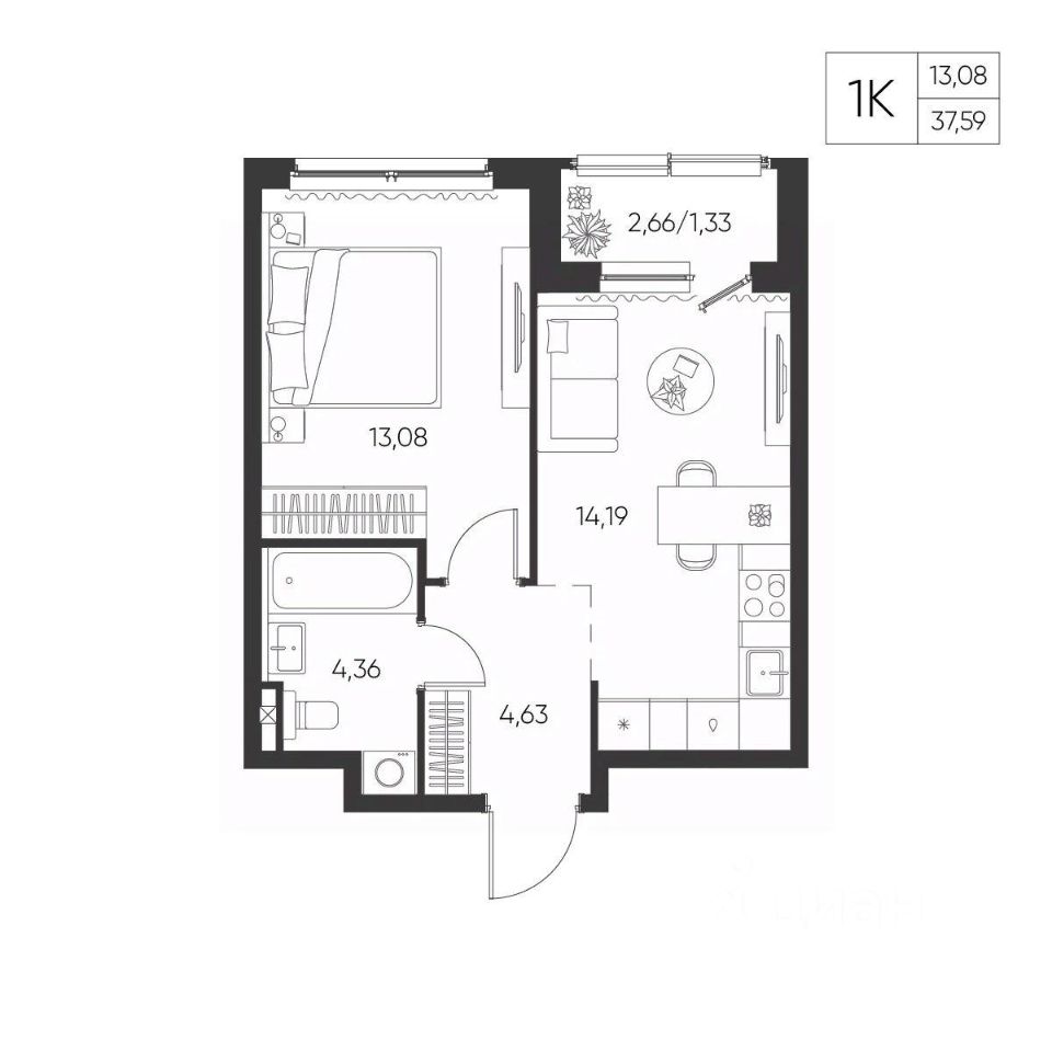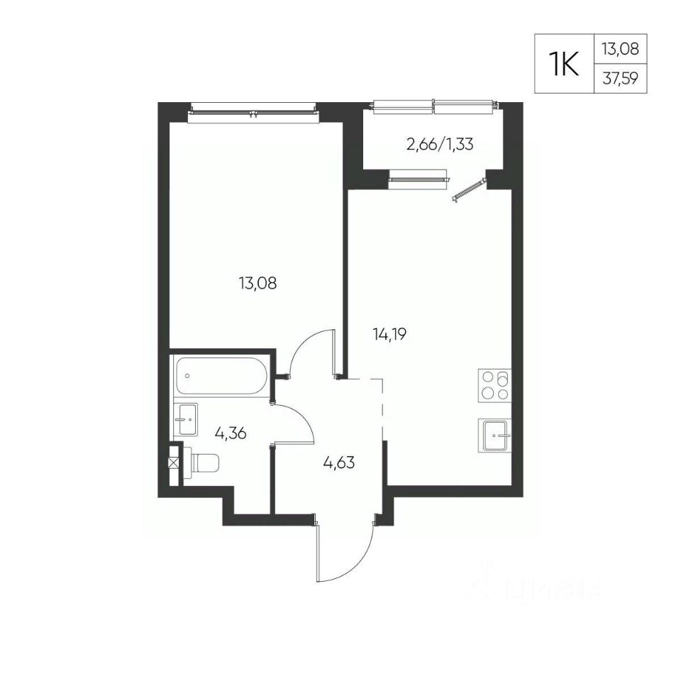 Общая площадь37,59 м²