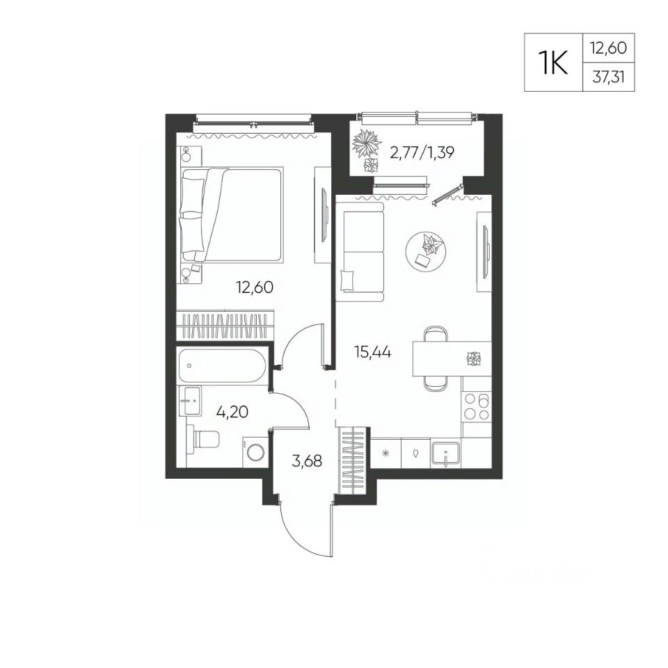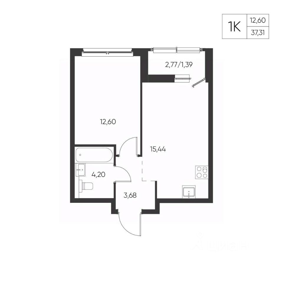 Общая площадь37,31 м²