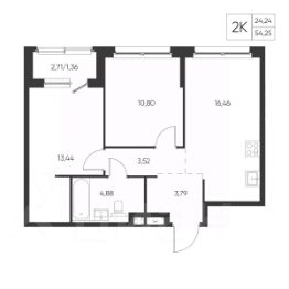 Общая площадь54,25 м²