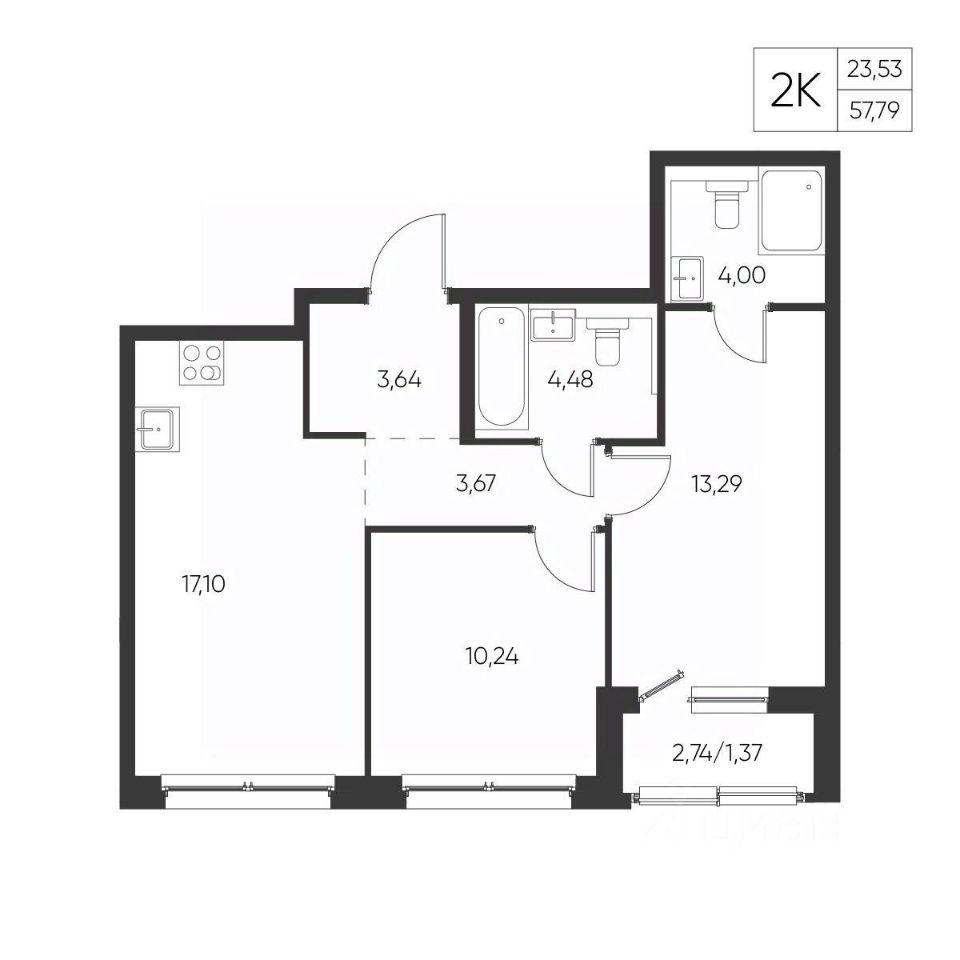 Общая площадь57,79 м²