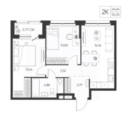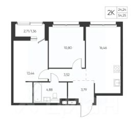 Общая площадь54,25 м²