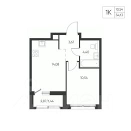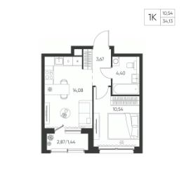 Общая площадь34,13 м²