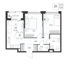 Общая площадь55,83 м²