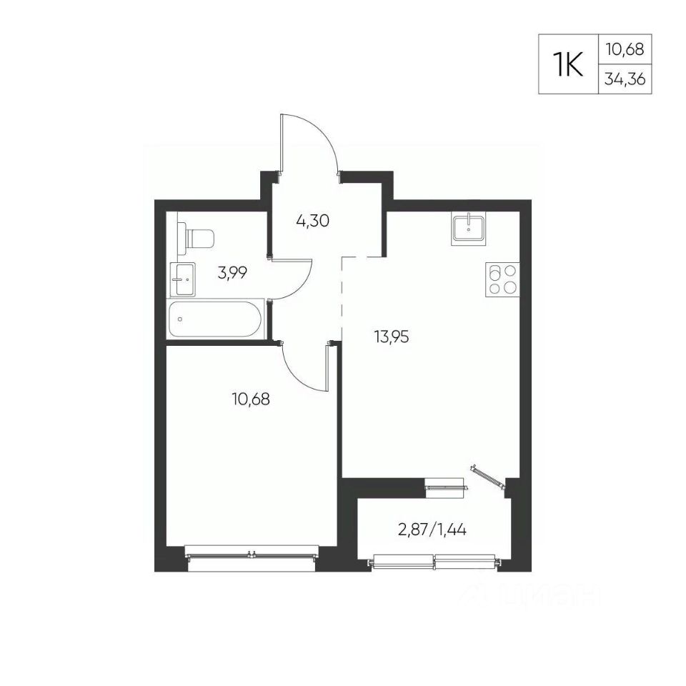 Общая площадь34,36 м²